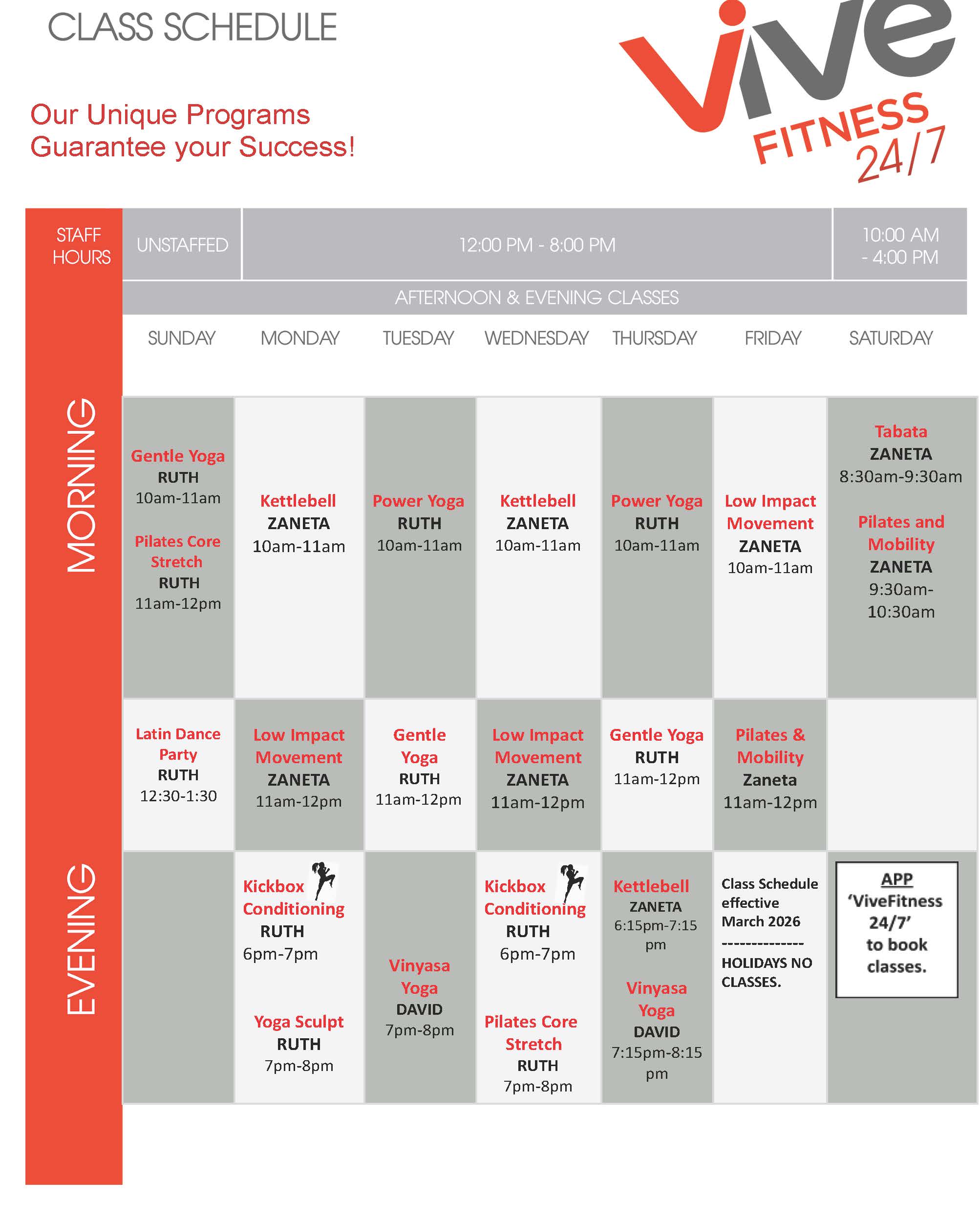 Staffed Hours Monday-Friday | 12pm - 8pm Saturday | 10am - 4pm Sundays & Holidays | Unstaffed 647.351.8483 dundas@vivefitness.com